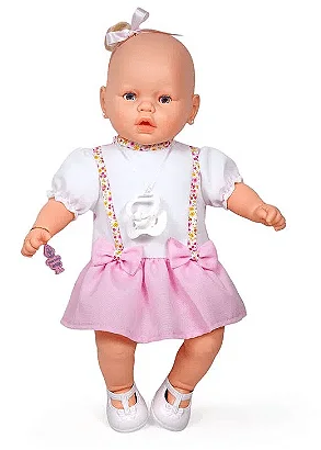Boneca Nenezinho Vestido Rosa e Branco 44 cm - Estrela