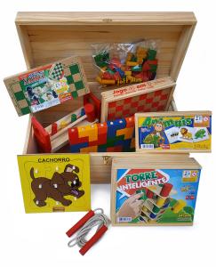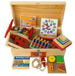 Bau de brinquedos madeira 12 jogos - Jott Play